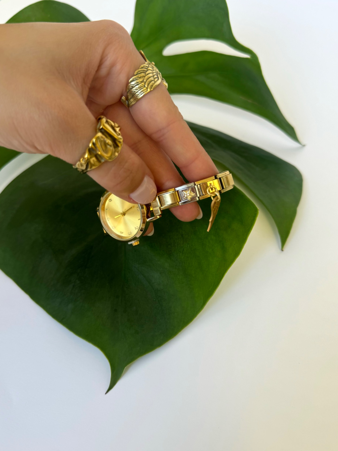 • Safira Watch with 18 links• Wings pendant • Esmeralda azul Zcharm • Guiding star charm